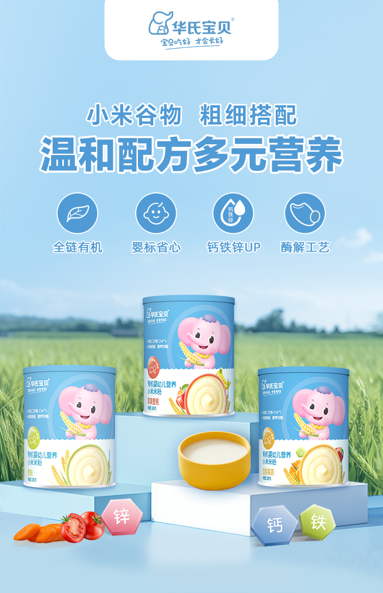 ③ 含铁量足:6个月后宝宝体内储存的铁快用完了,母乳/配方奶里的铁不够用,强化铁米粉是补帖的优质来源,能预防缺铁性贫血。